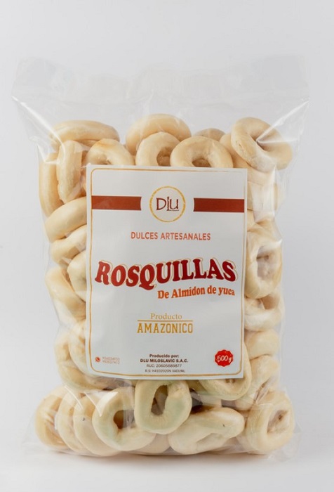 Anillos crujientes elaborados con almidón de yuca y decorados. Un clásico de la repostería amazónica.